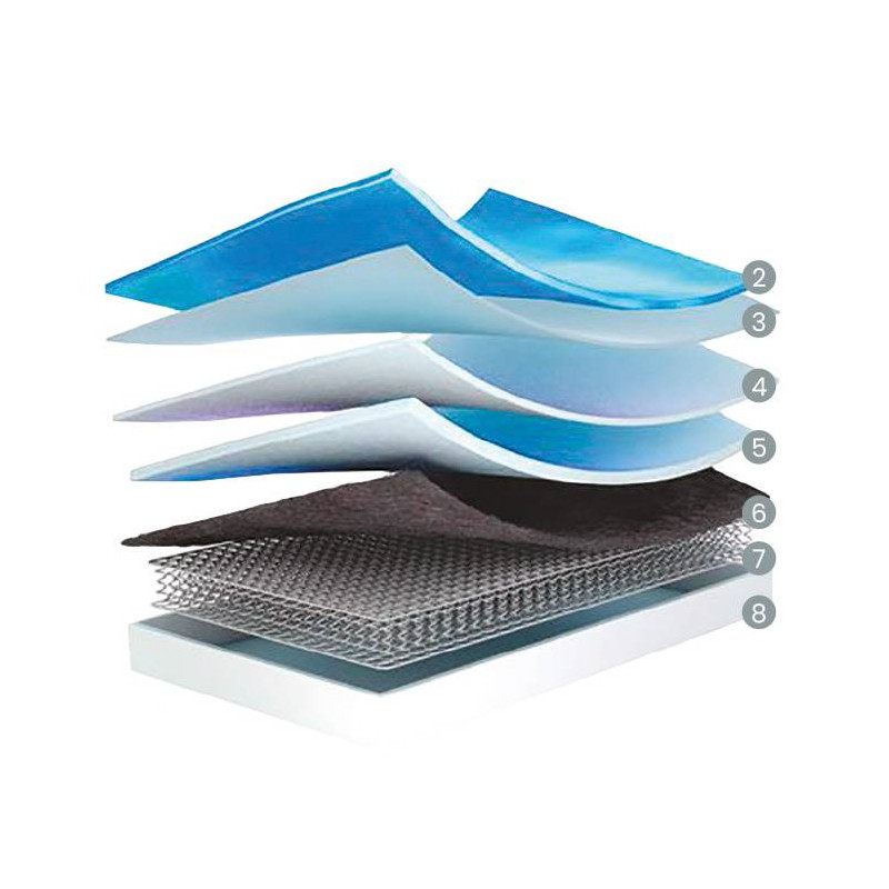 Colchão de molas contínuas Multielástic® NXT, com ± 26 cm de altura e acabamentos premium. Proporciona suporte firme, homogéneo e duradouro, com excelente adaptabilidade graças à sua estrutura compacta de molas cruzadas. Com tecido stretch respirável, sistema termorregulador Optigrade®, reforço encapsulado em HR de alta densidade e tratamento antibacteriano Total Protect®, garante frescura, estabilidade e máximo conforto. Colchão de duas faces para maior longevidade.